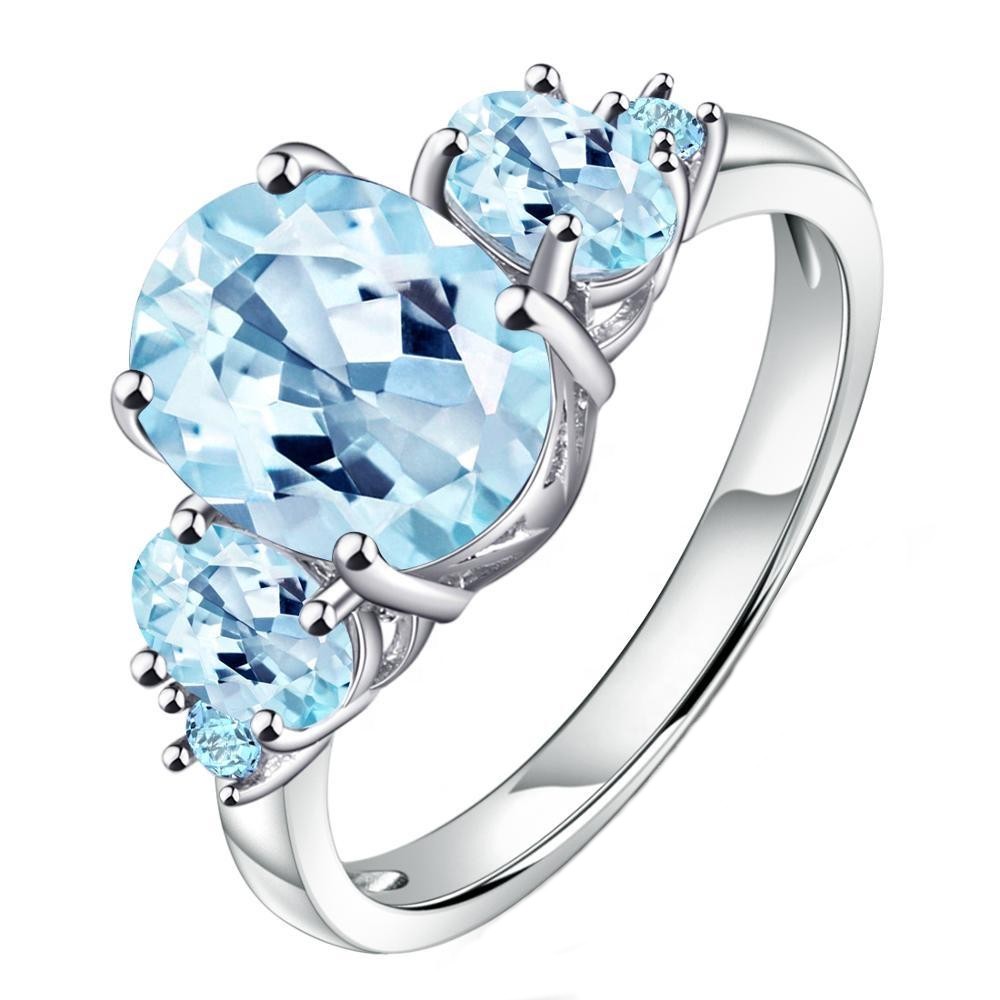 Side Stones: 0.60ct (4mm*6mm) Each Oval Cut Natural Blue Topaz