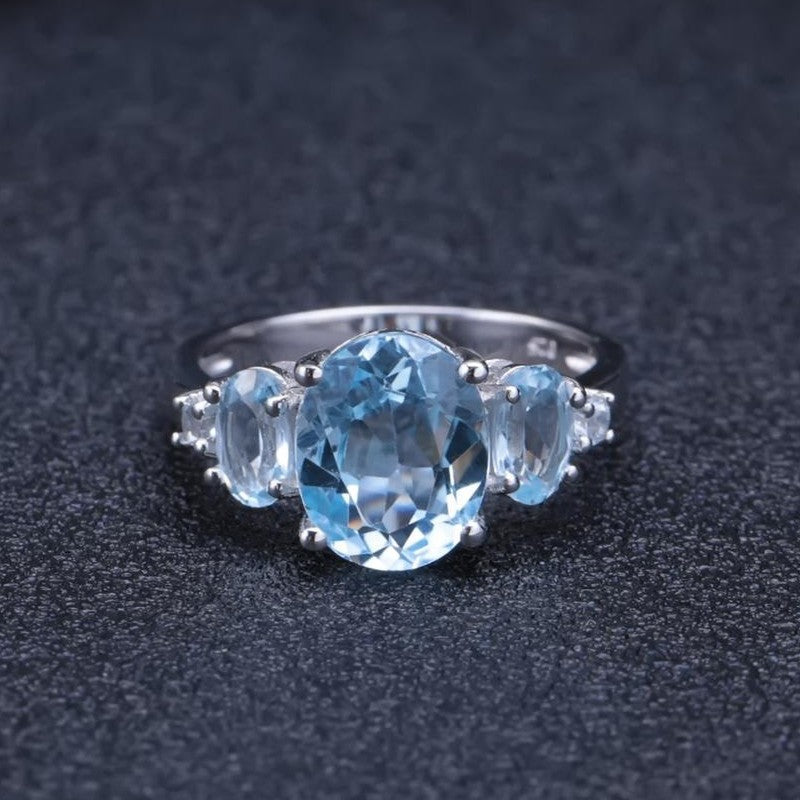 Centre Stone: 3.47ct (8mm*10mm) Oval Cut Natural Blue Topaz