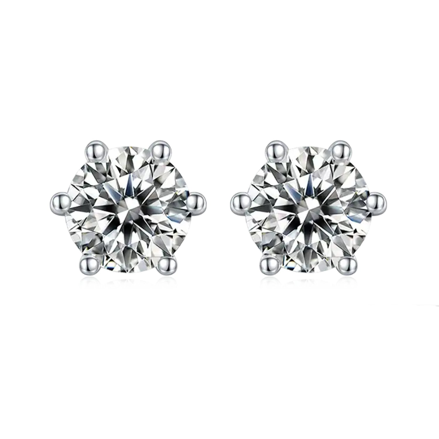 Heritage Solitaire 6 Claw Moissanite Stud Earrings Set in Sterling Silver
