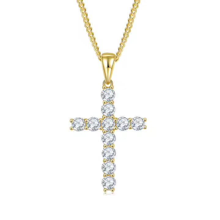 Moissanite Cross Pendant 18ct Yellow Gold Plated