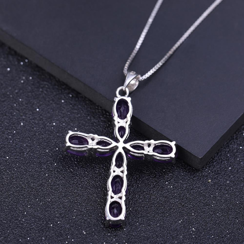 Amethyst Pear & Oval Cut Cross Pendant Necklace
