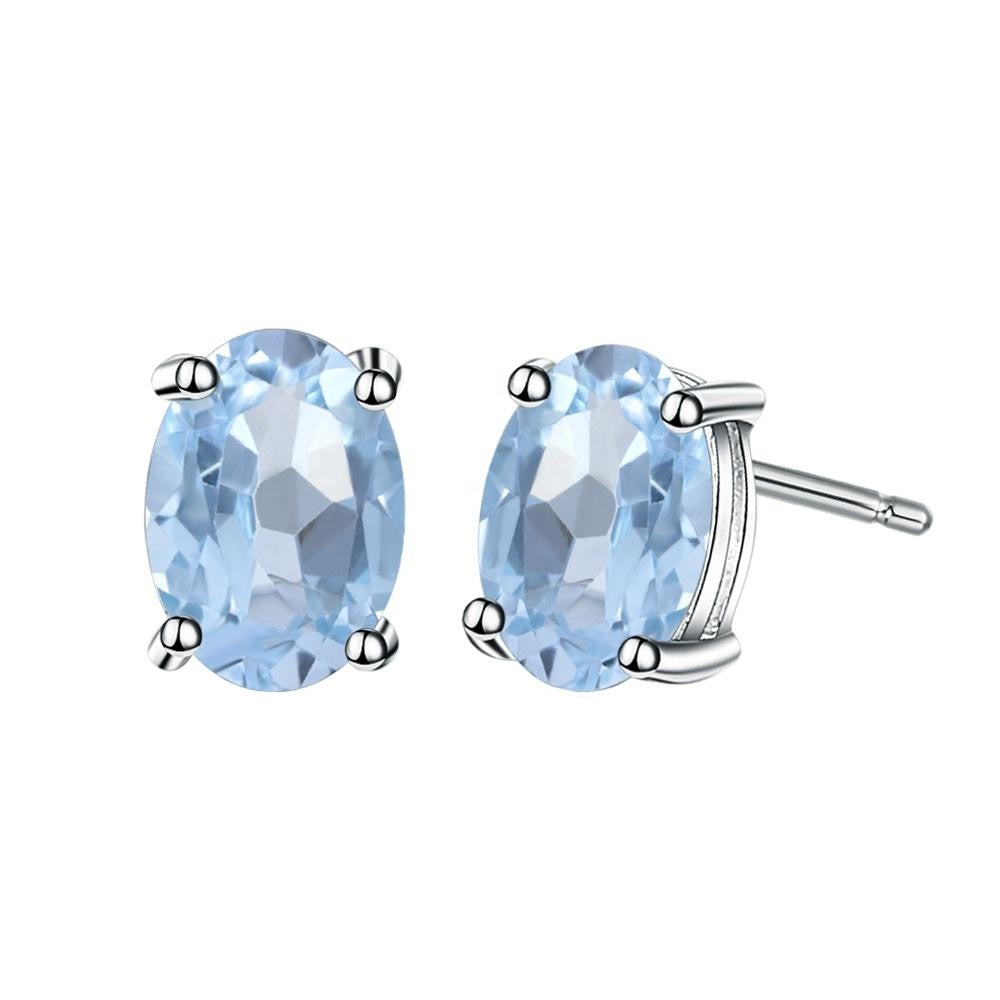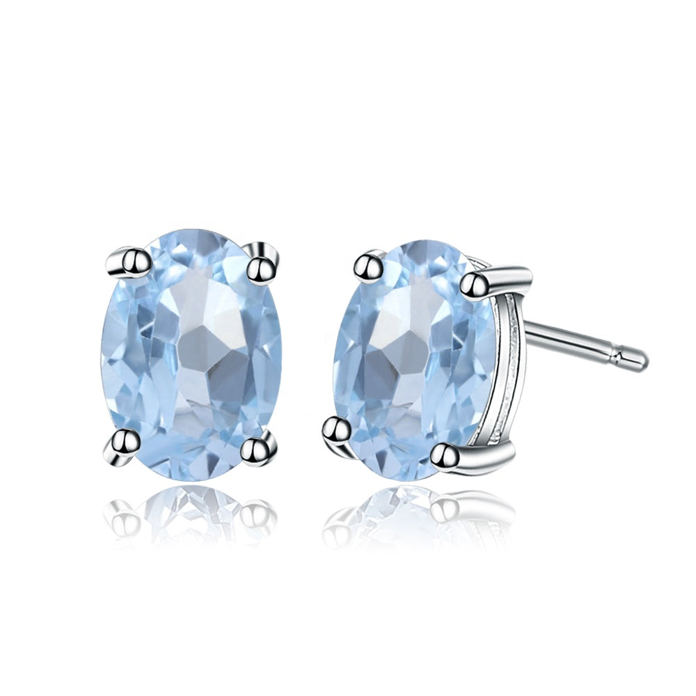 Stones: 0.60ct each (4mm x 6mm) oval-cut natural Blue Topaz
