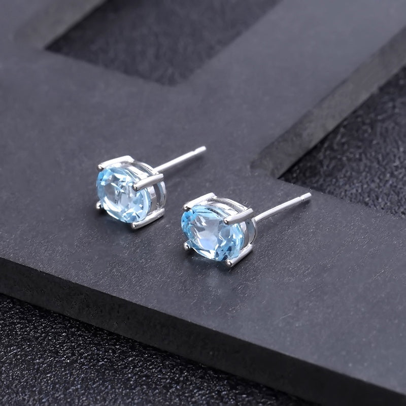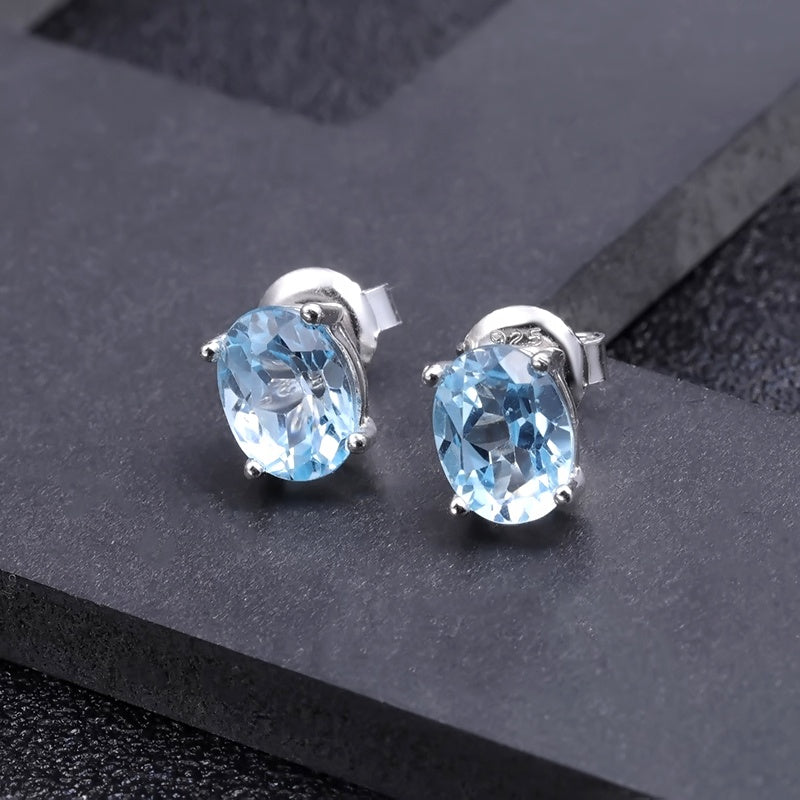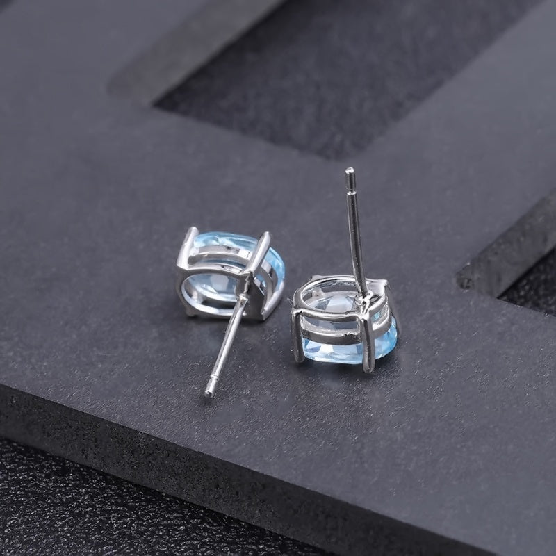 Blue Topaz 0.60ct Oval-Cut Solitaire Stud Earrings