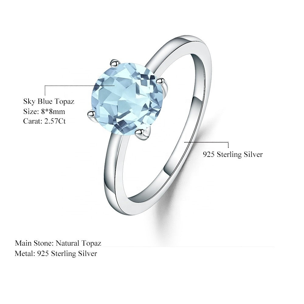 Stone: 2.57ct (8mm*8mm) Round Brilliant Natural Blue Topaz