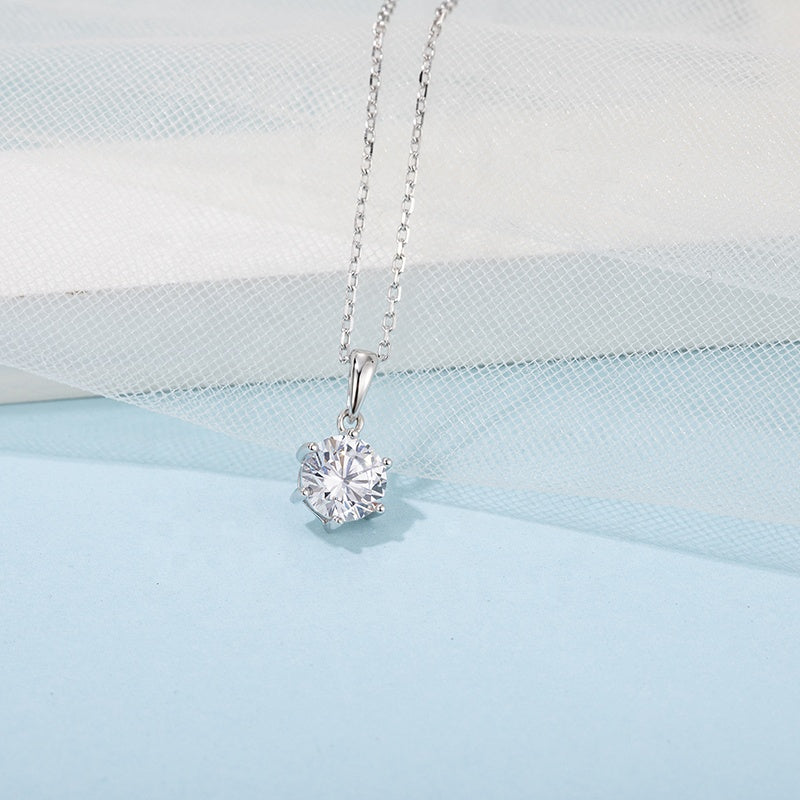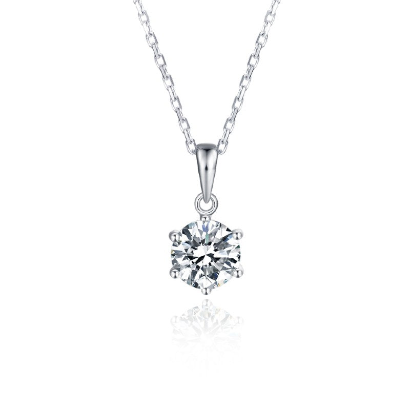 Classic 6 Claw 1.00ct Moissanite Pendant Set in Sterling Silver