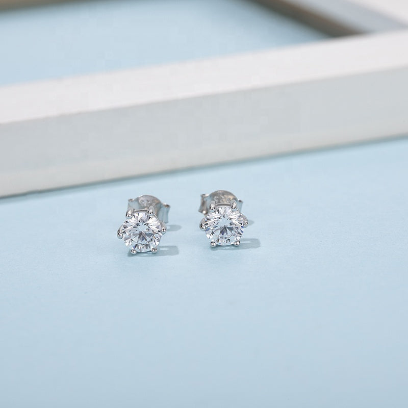 Heritage Solitaire 6 Claw Moissanite Stud Earrings Set in Sterling Silver