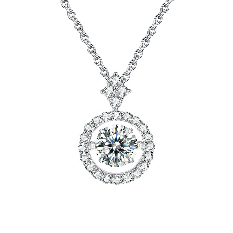 Heritage Halo Dancing Moissanite Pendant Set in Sterling Silver