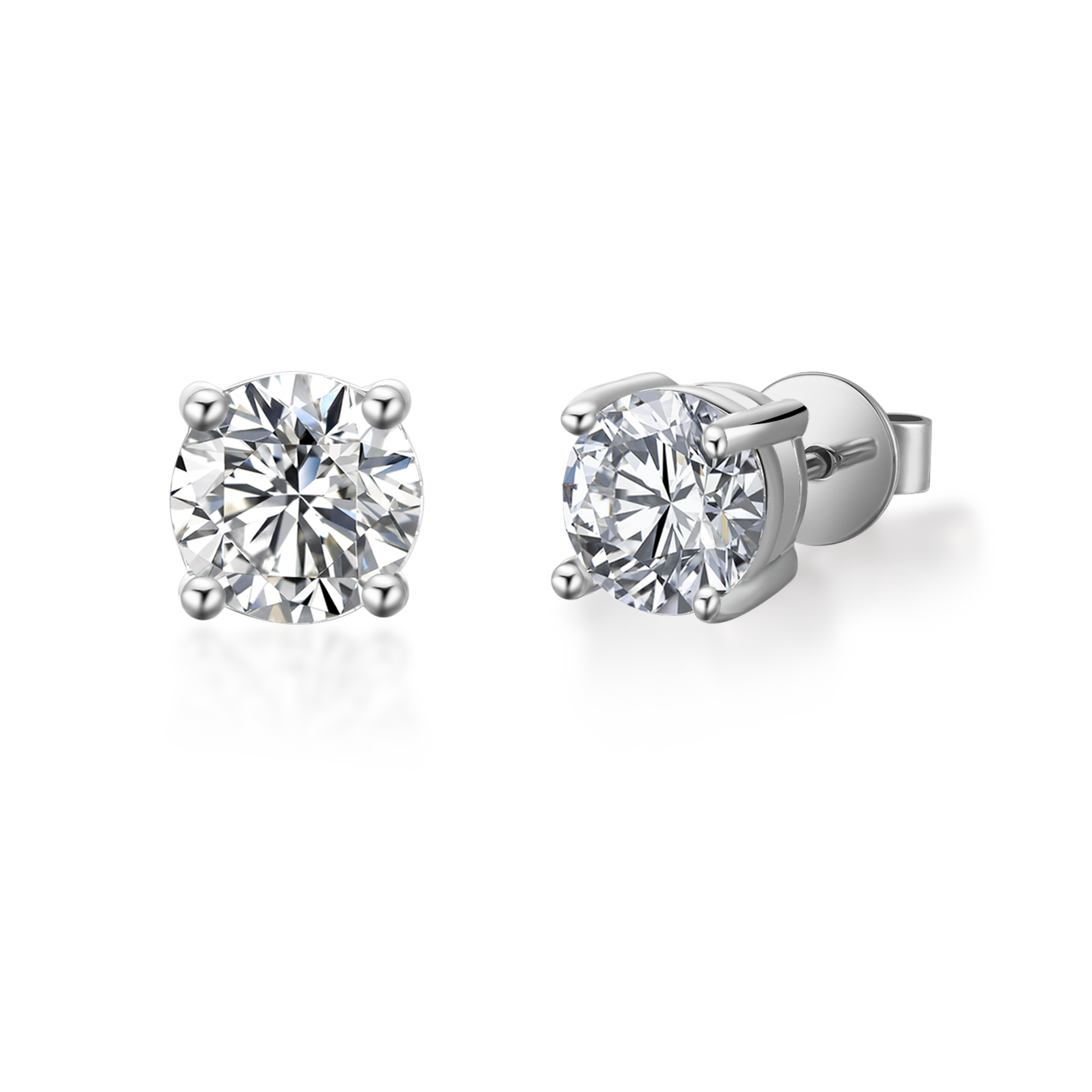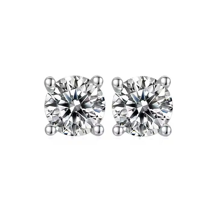 Heritage Solitaire 4 Claw Moissanite Stud Earrings Set in Sterling Silver