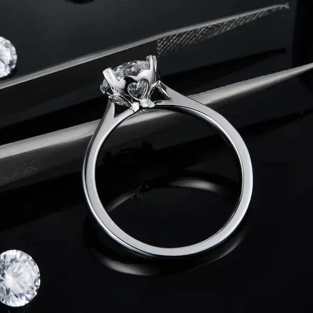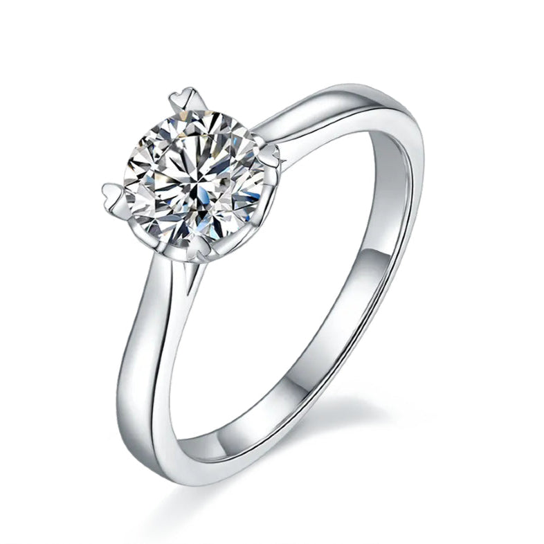 Heritage Solitaire 4 Heart Shaped Claws 1.00ct Moissanite Engagement Ring Set in Sterling Silver