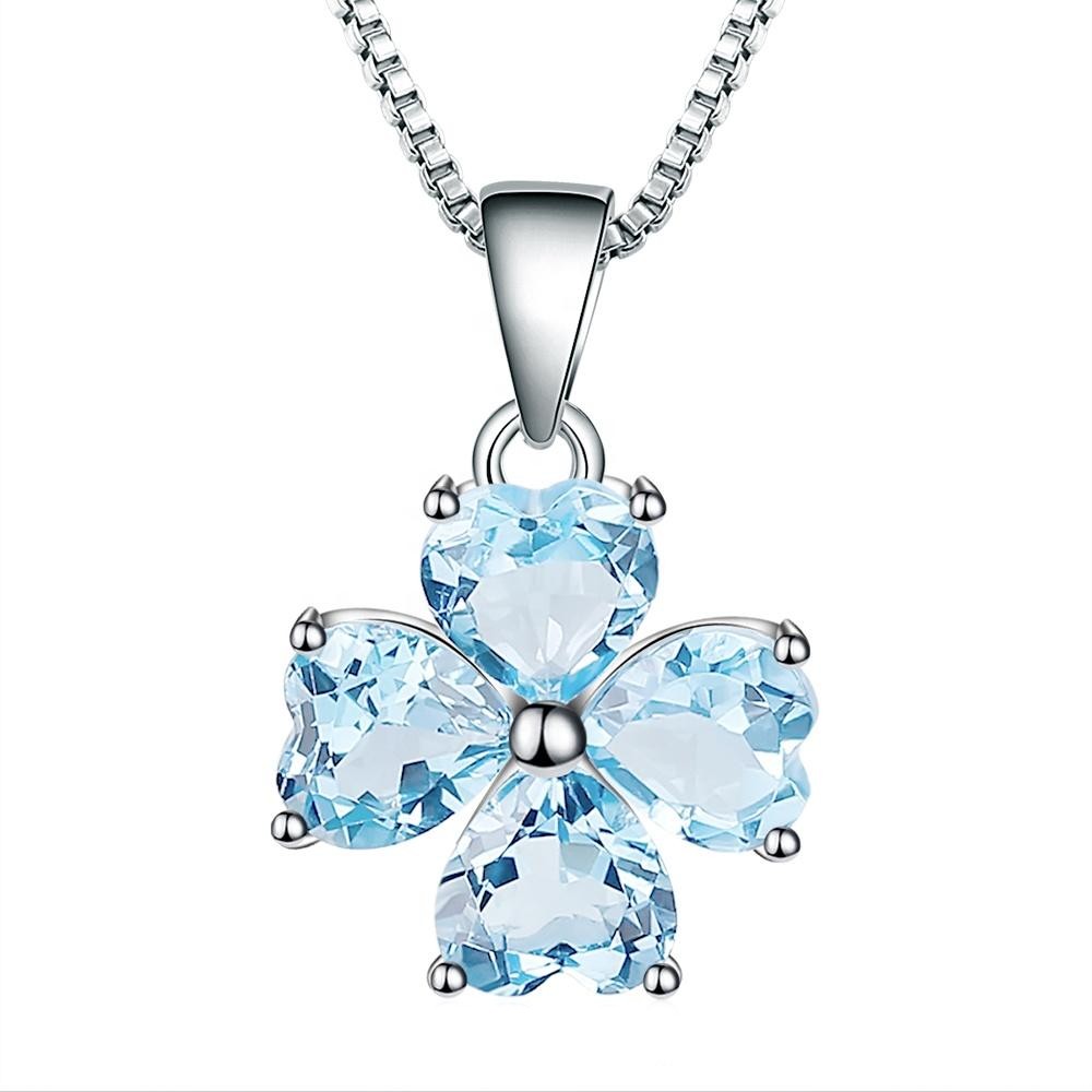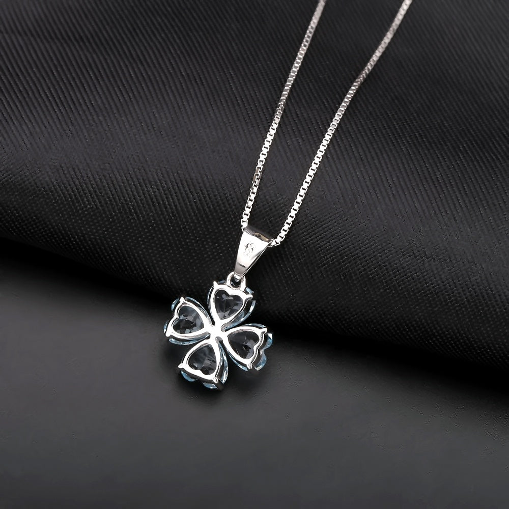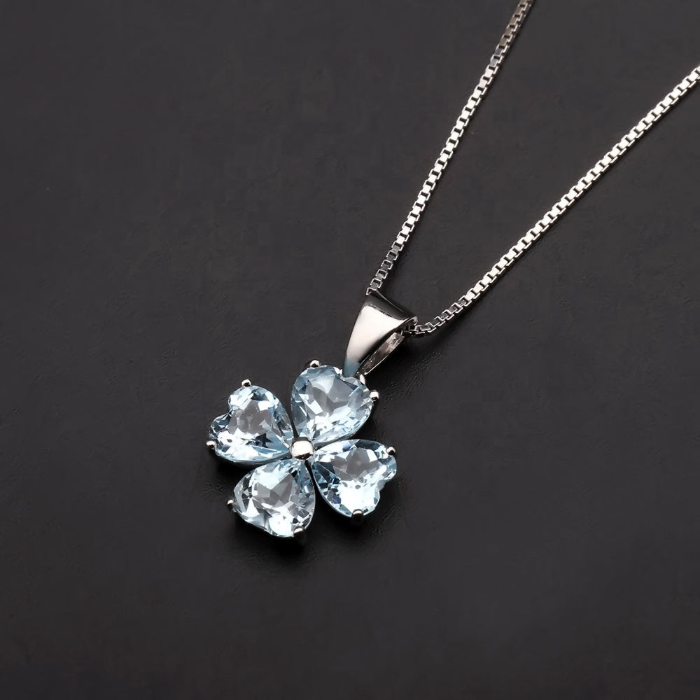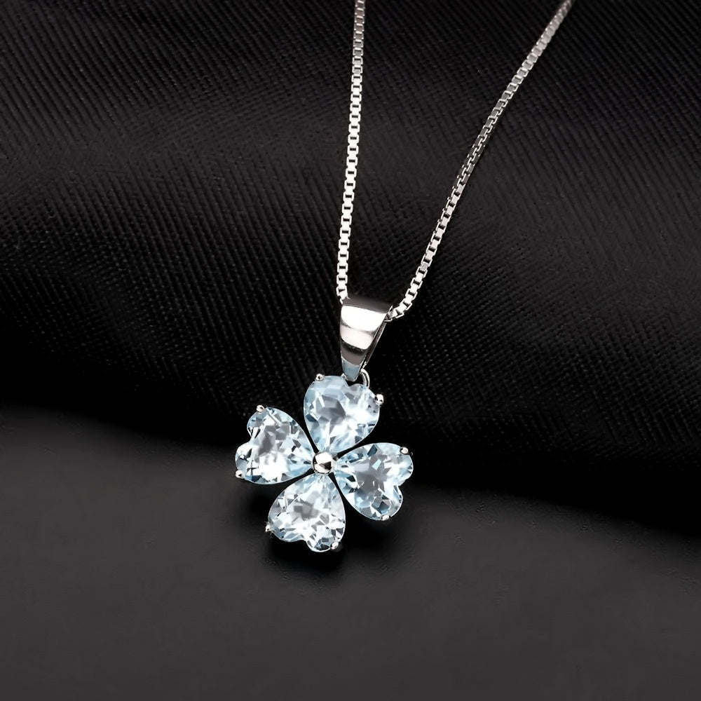 Blue Topaz Clover Heart Pendant Necklace