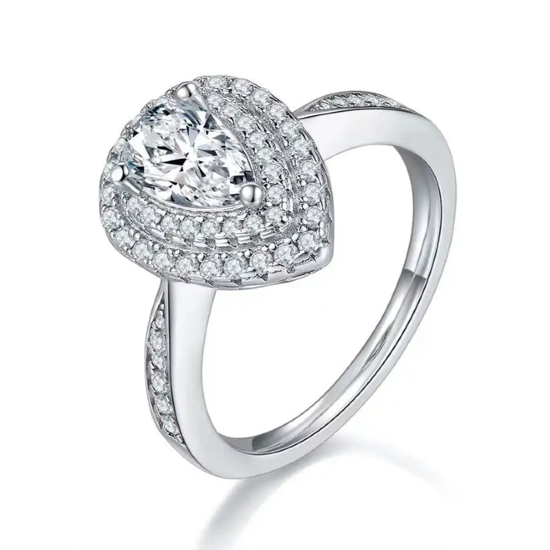 Double Halo 1.00ct Pear Shape Moissanite Engagement Ring