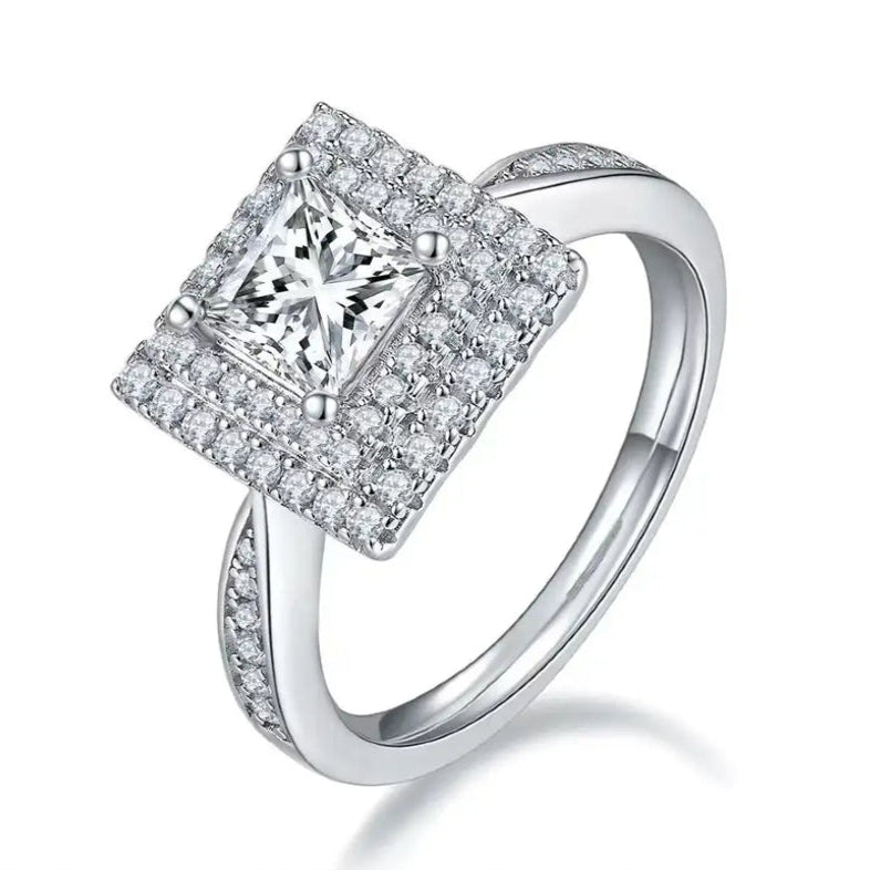Double Halo 1.00ct Princess Cut Moissanite Engagement Ring