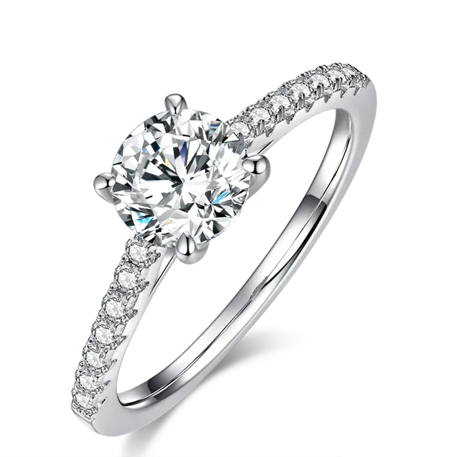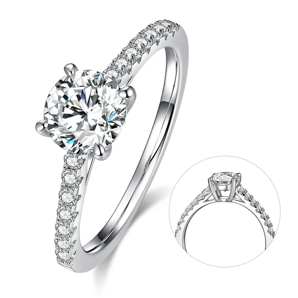 Elevé 1.00ct Round Brilliant Moissanite Engagement Ring Set in Sterling Silver