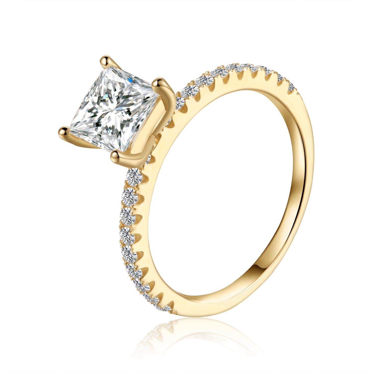 Elevé 1.20ct Princess Cut Moissanite Engagement Ring Set in 9ct Yellow Gold