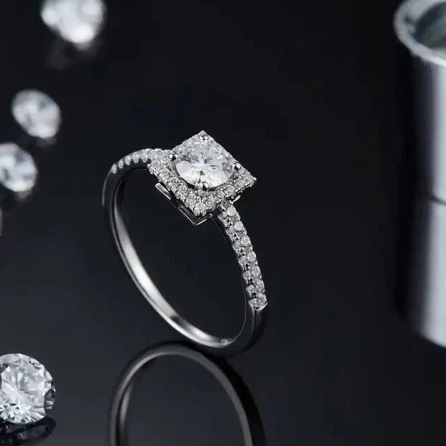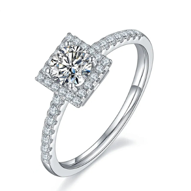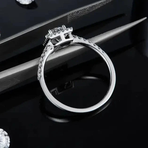 Elevé Halo 0.50ct Moissanite Engagement Ring Set in Sterling Silver