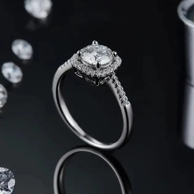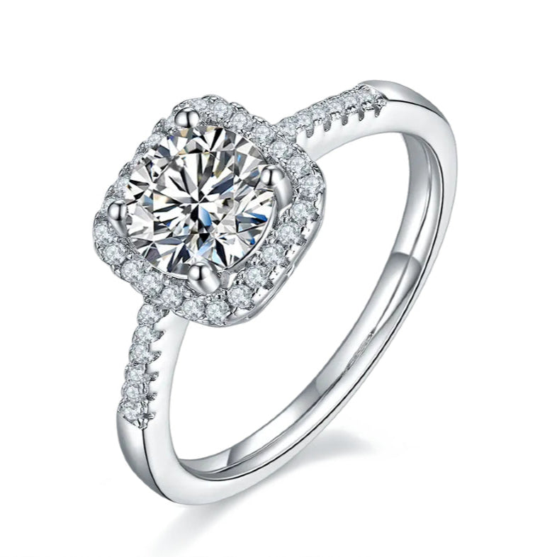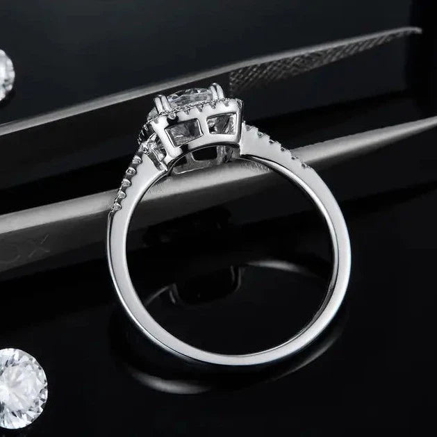 Elevé Halo 1.00ct Moissanite Engagement Ring Set in Sterling Silver
