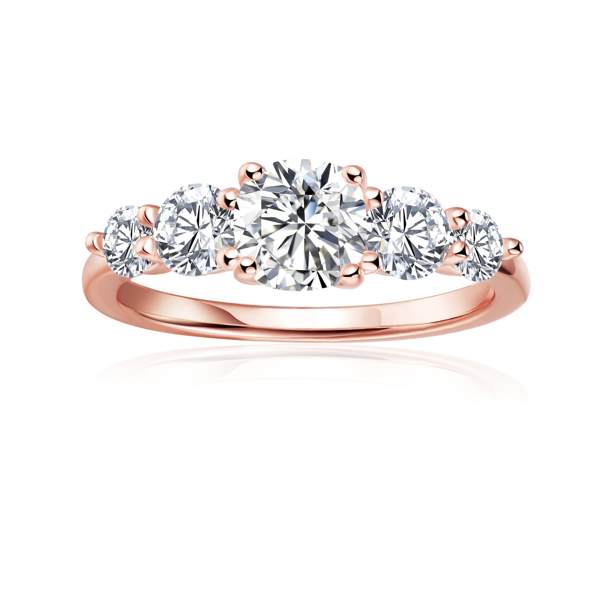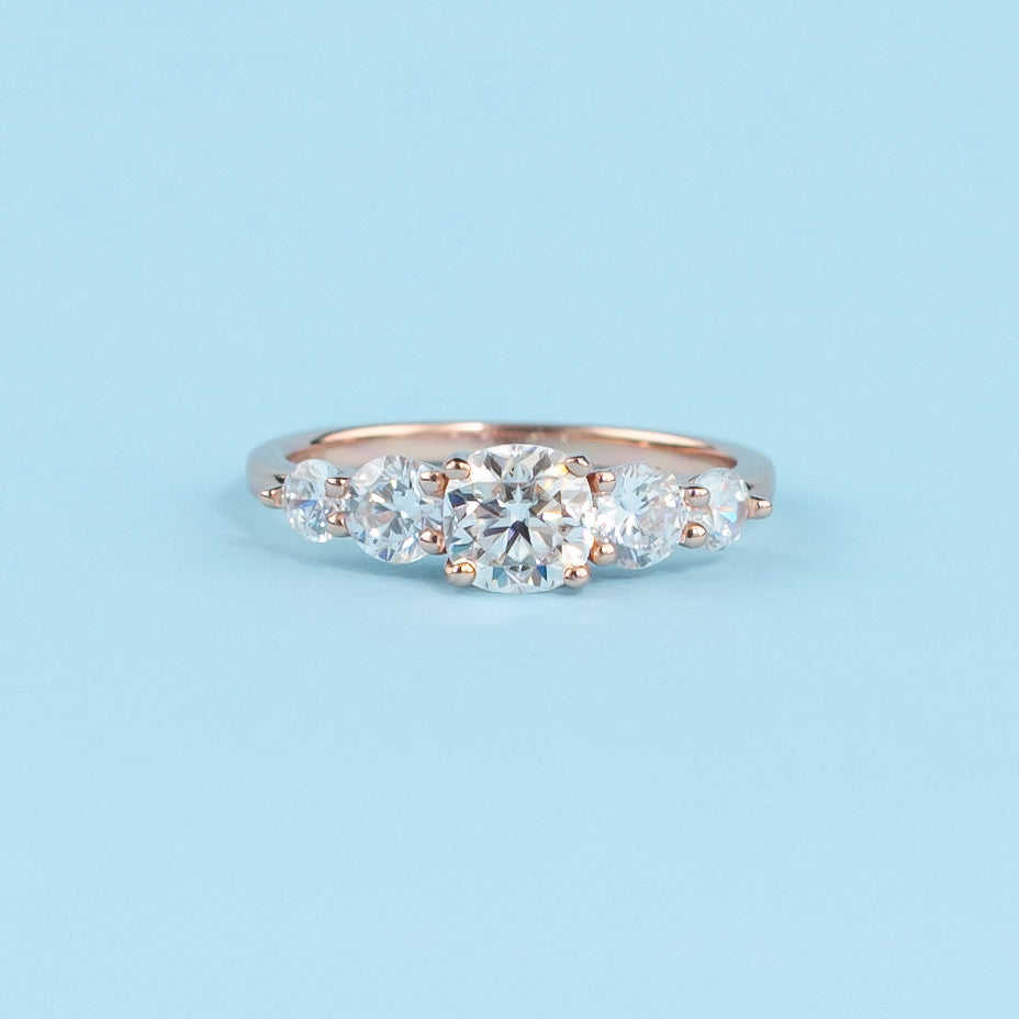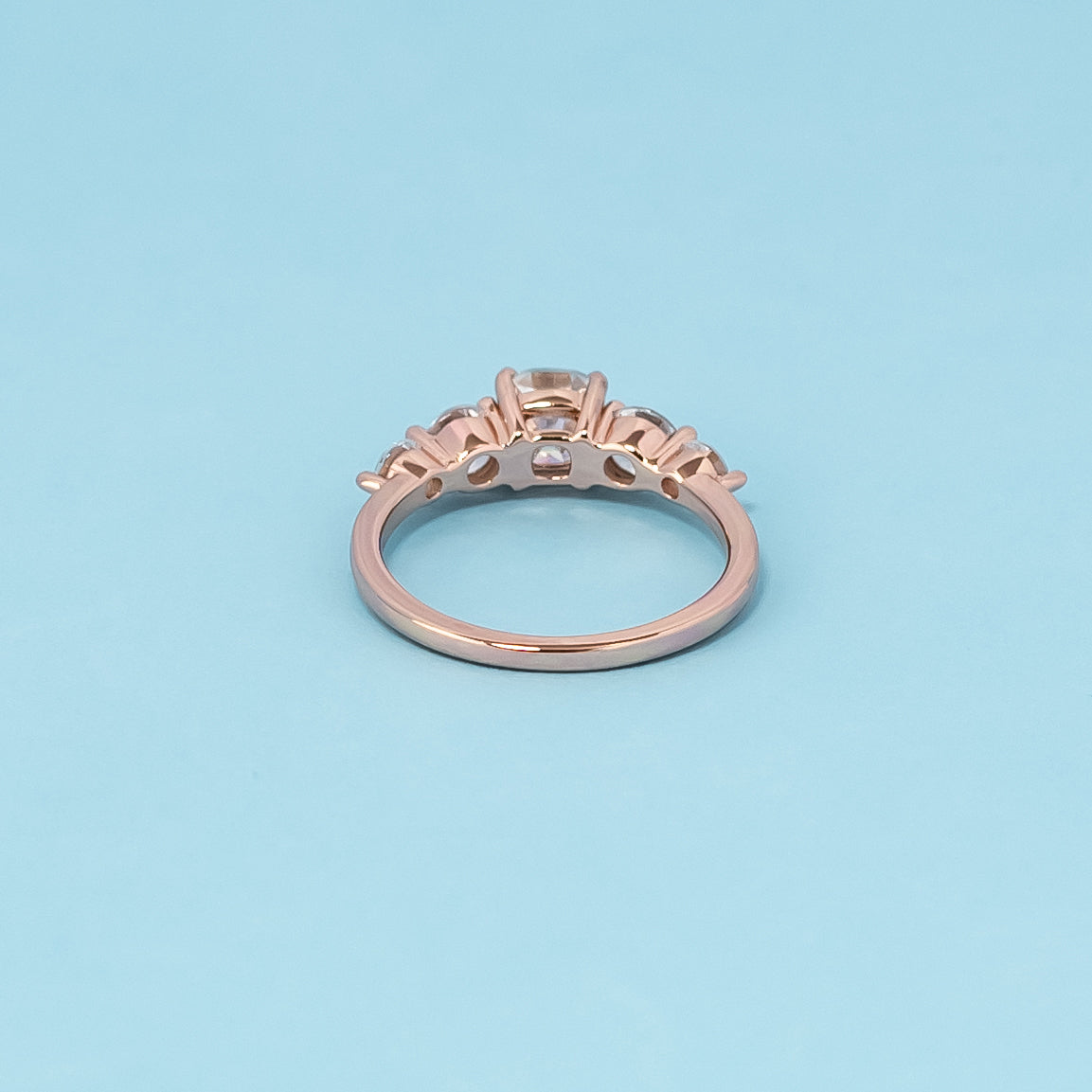 Five-Stone Cushion Cut Moissanite Engagement Ring Set in 9ct Rose Gold