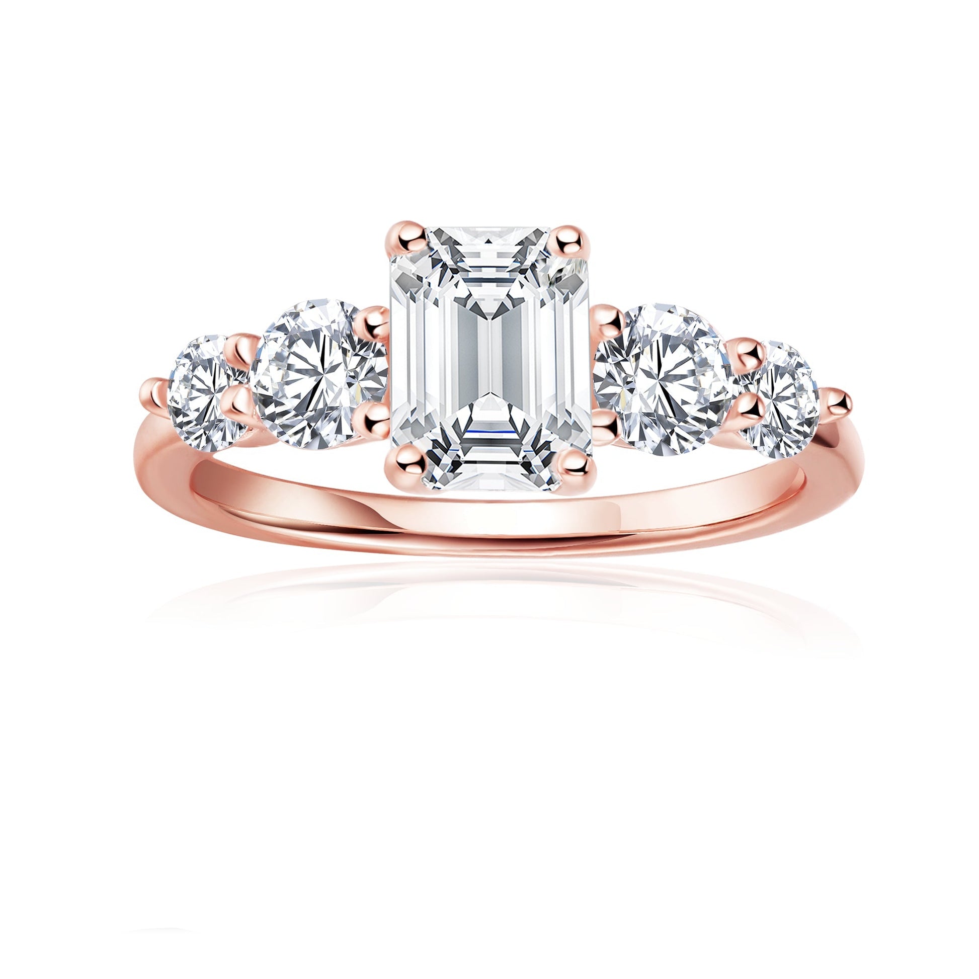 Five-Stone Emerald Cut Moissanite Engagement Ring Set in 9ct Rose Gold