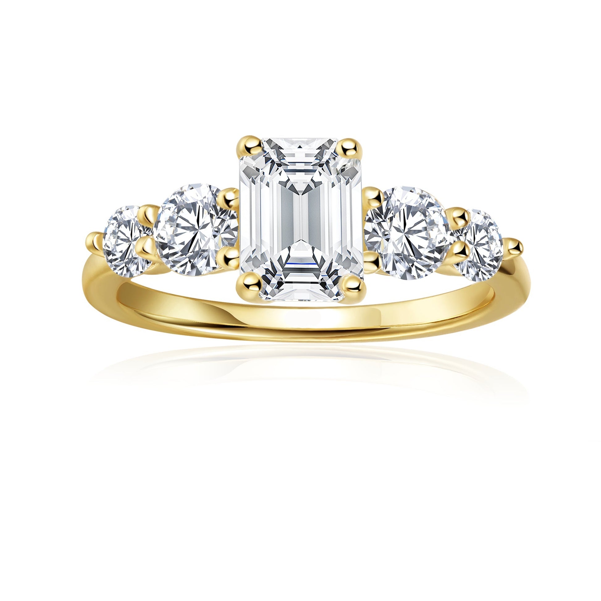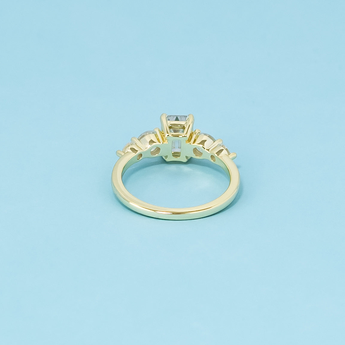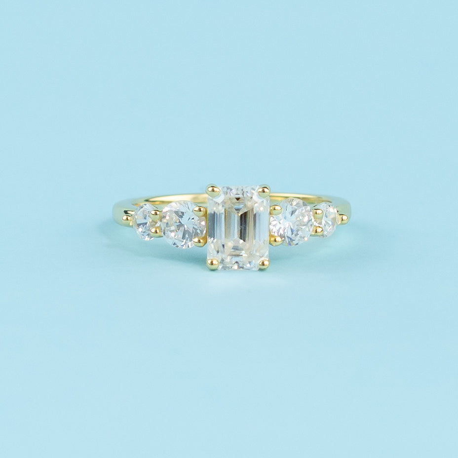 Five-Stone Emerald Cut Moissanite Engagement Ring Set in 9ct Yellow Gold