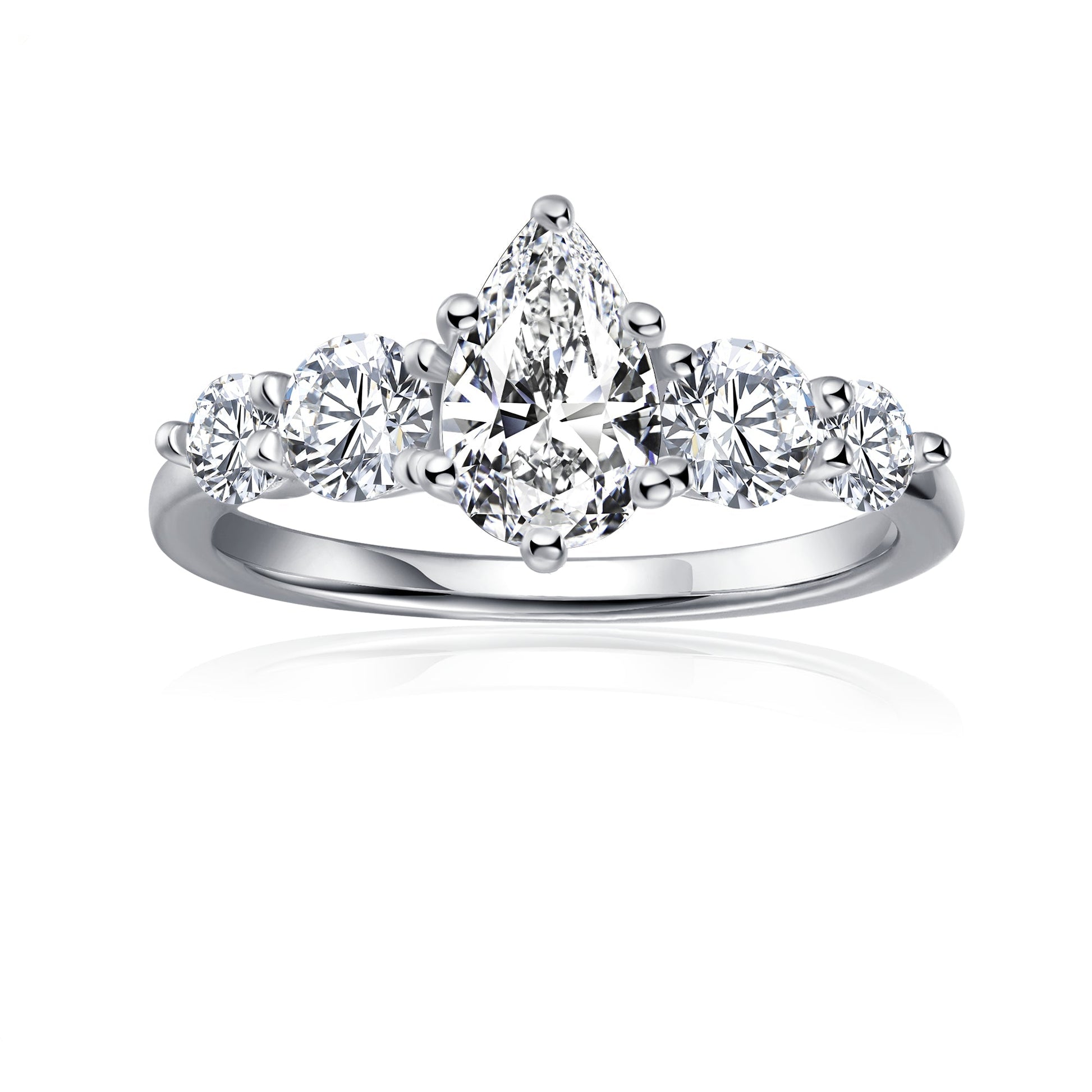 Five-Stone Pear Shape Moissanite Engagement Ring Set in 9ct White Gold