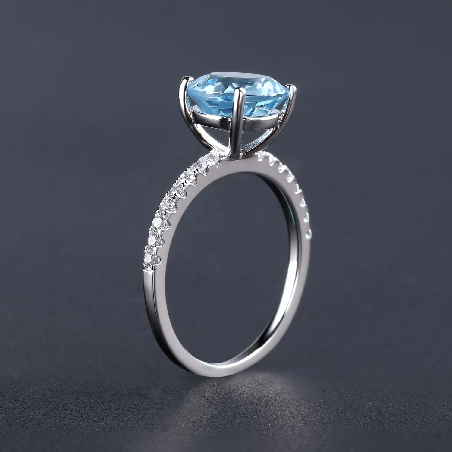 Centre Stone: 3.45ct (9mm*9mm) Round Brilliant Natural Blue Topaz