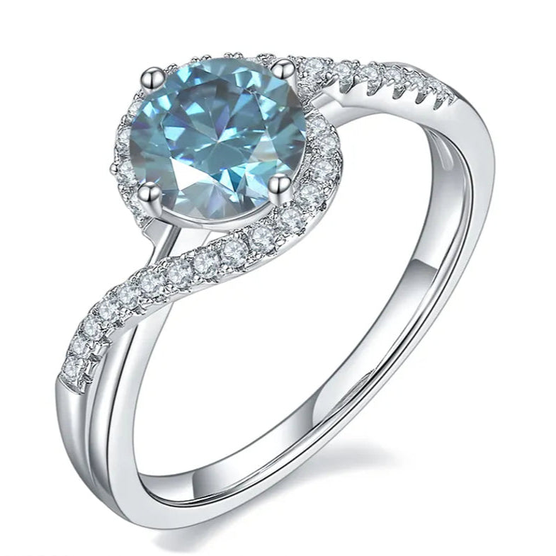 Privé Halo 1.00ct Blue Moissanite Engagement Ring Set in Sterling Silver