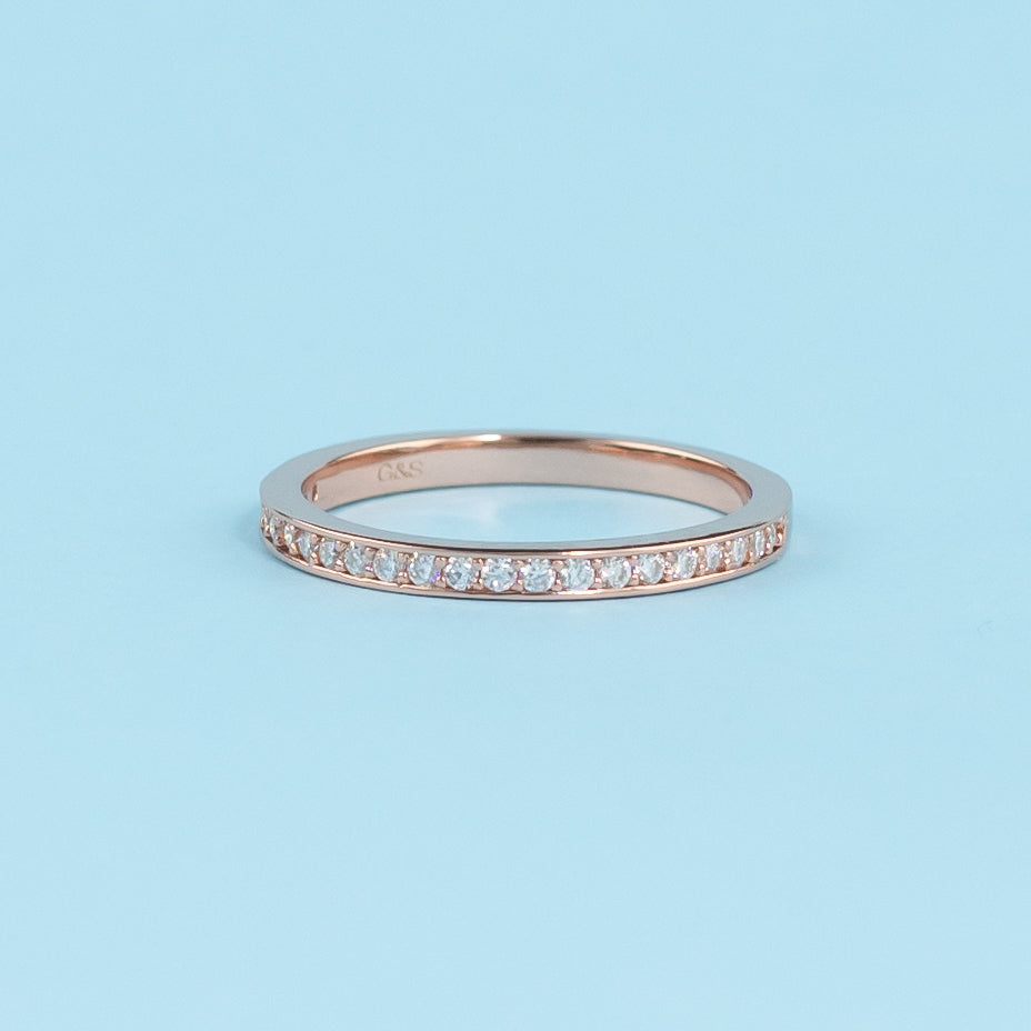 Heritage Pave Moissanite Wedding Band Set in 9ct Rose Gold
