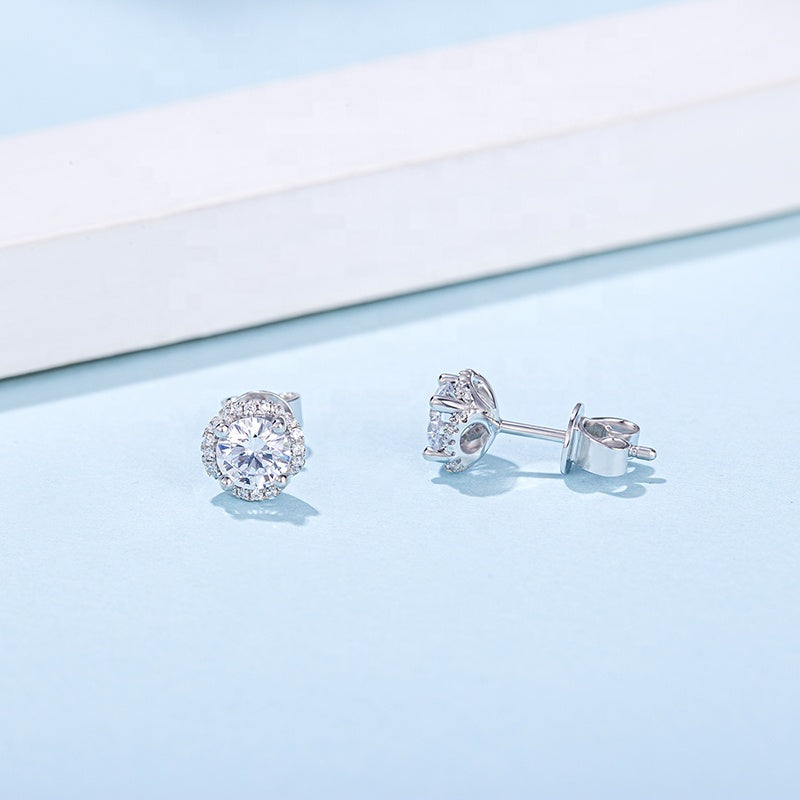 Halo Moissanite Stud Earrings Set in Sterling Silver