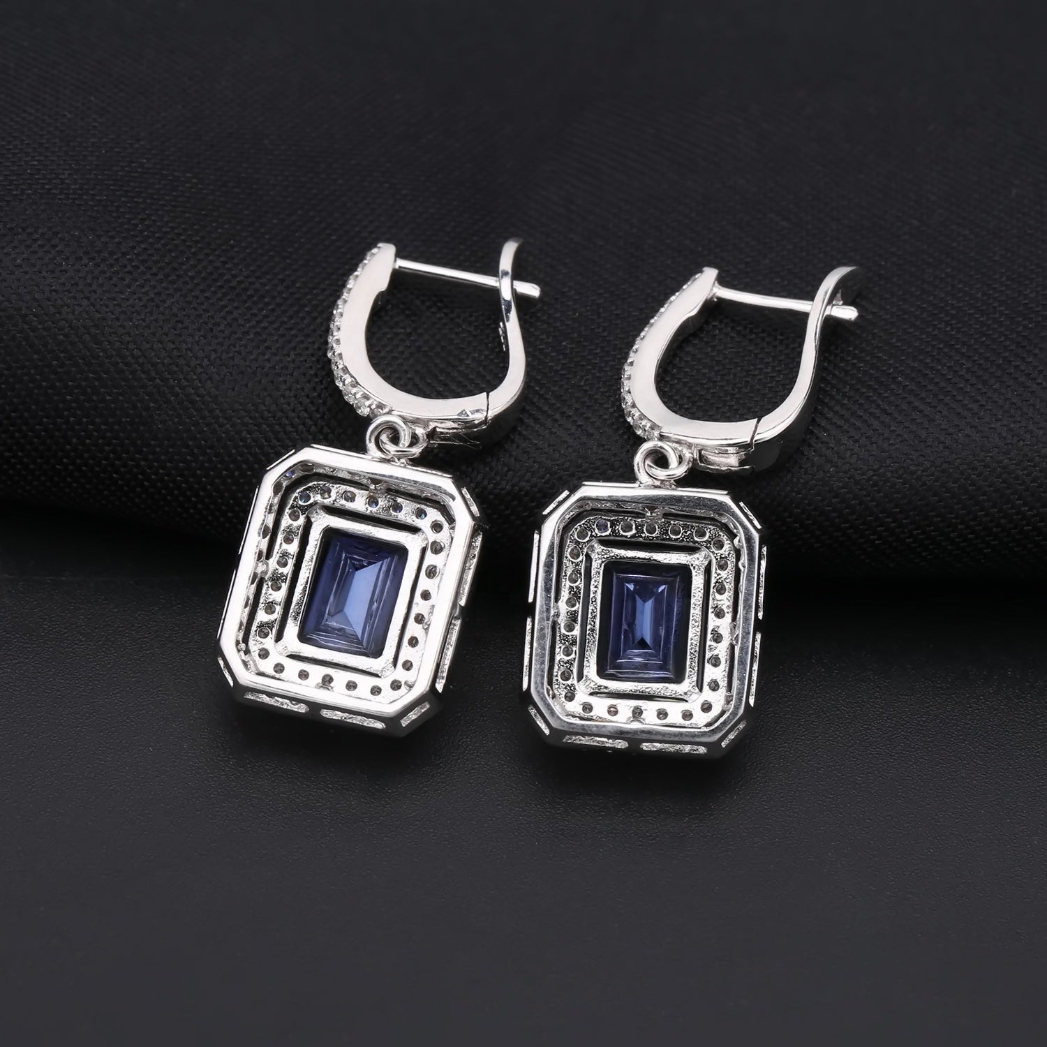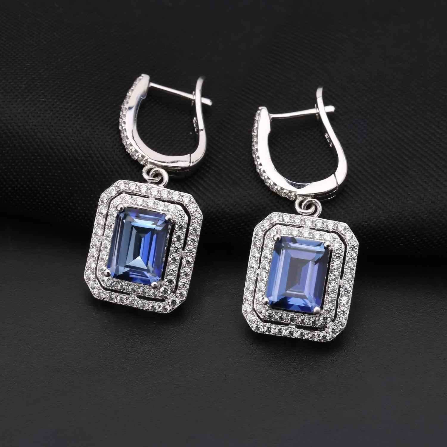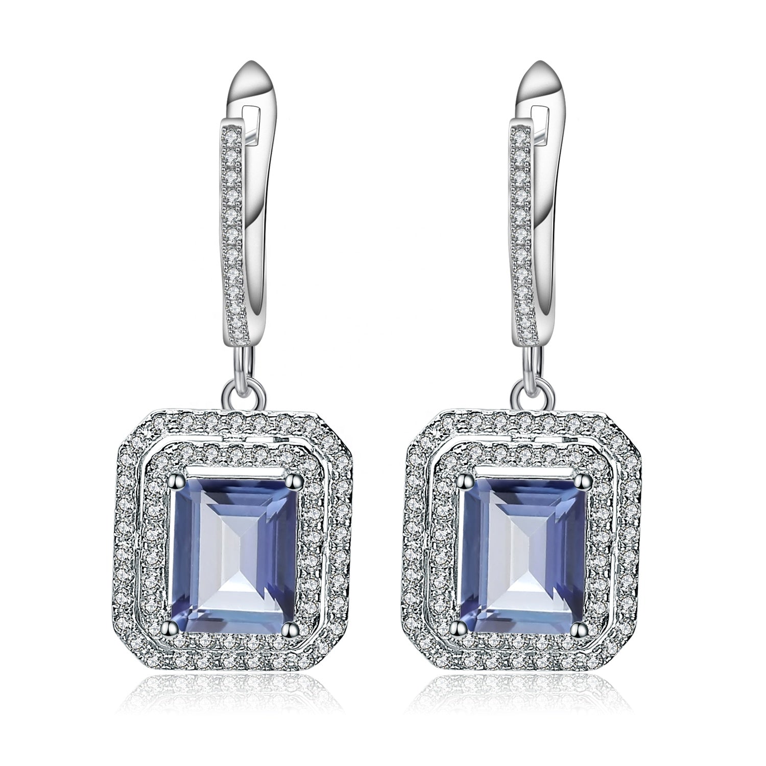 Mystic Quartz 2.05ct Emerald-Cut Halo Drop Earrings