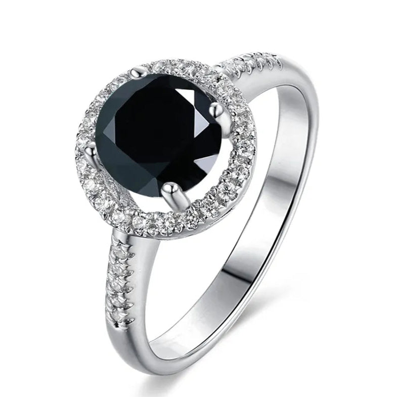 Halo Éternel 1.00ct Black Moissanite Engagement Ring Set in Sterling Silver