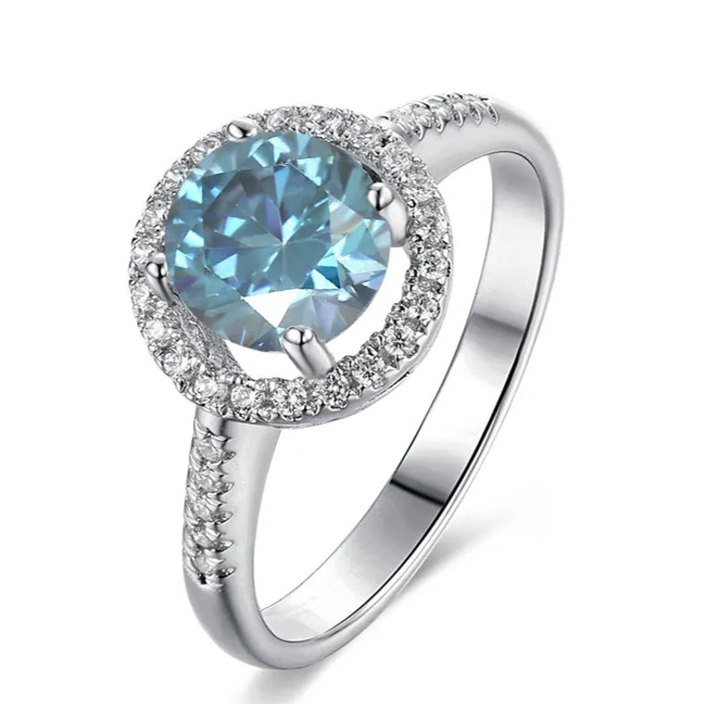 Halo Éternel 1.00ct Blue Moissanite Engagement Ring Set in Sterling Silver