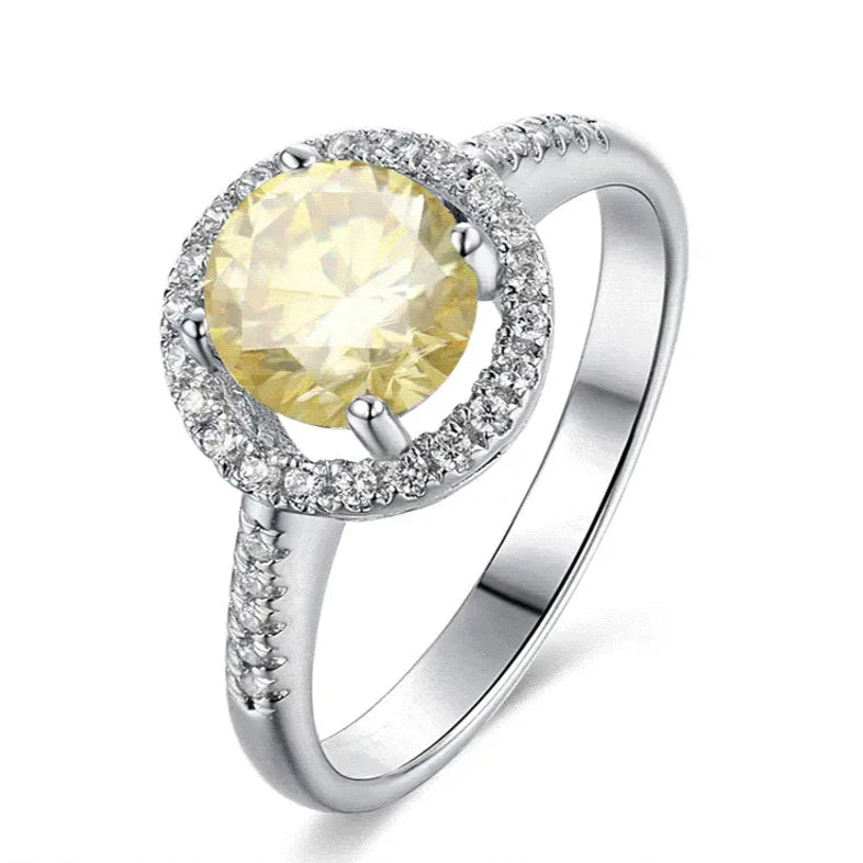 Halo Éternel 1.00ct Yellow Moissanite Engagement Ring Set in Sterling Silver