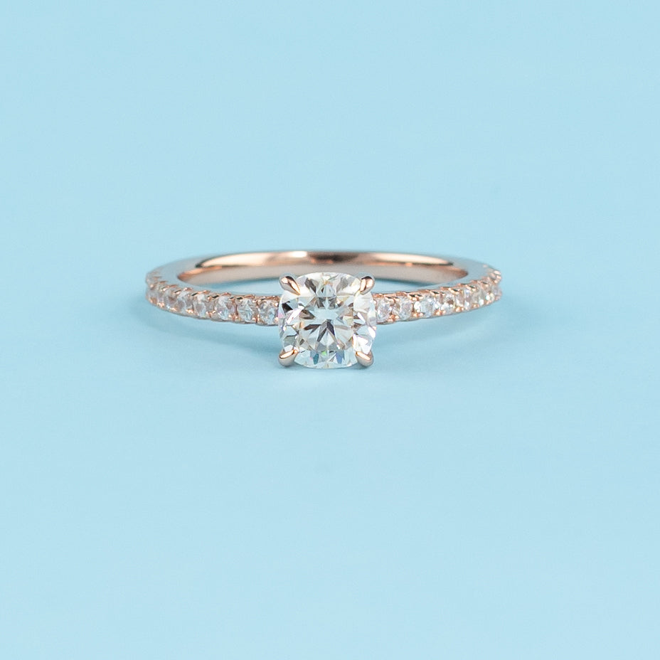 Cushion Cut Moissanite Engagement Ring Set in 9ct Rose Gold