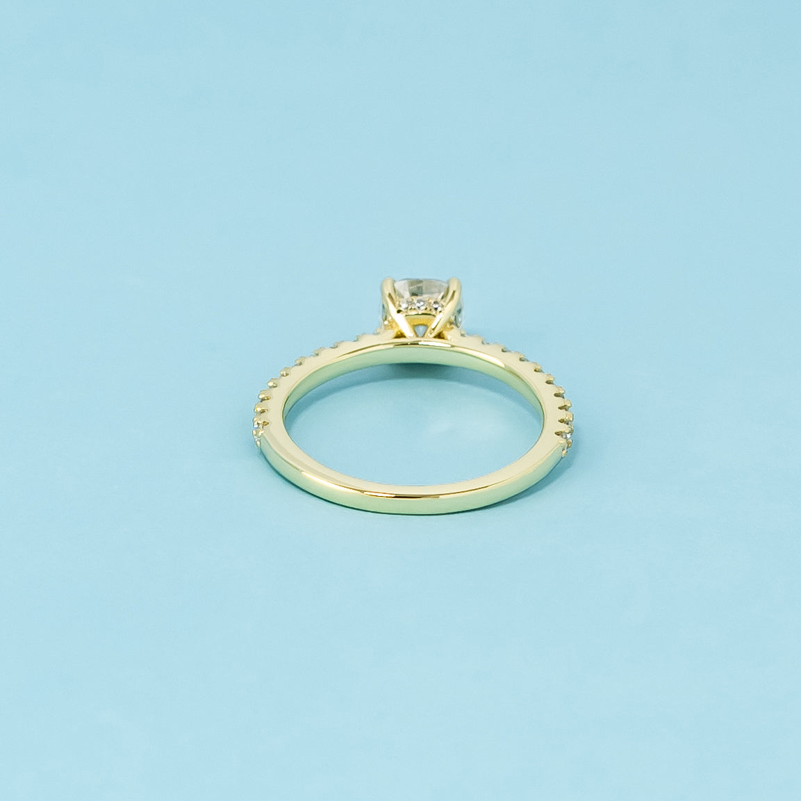 - Center Moissanite: Cushion Cut 0.80ct (5.5mm)
