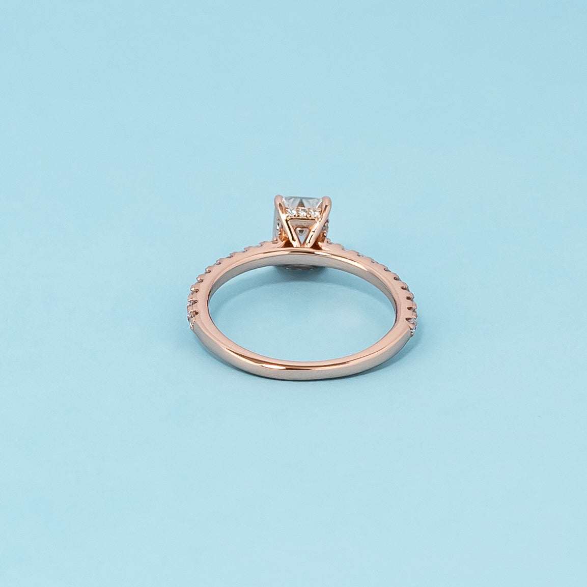 Emerald Cut Moissanite Engagement Ring Set in 9ct Rose Gold