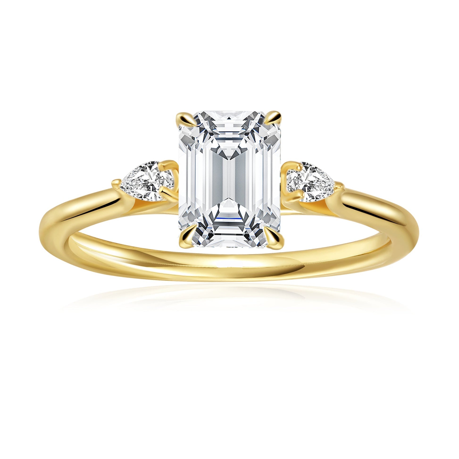 Trinity Emerald Cut Moissanite Engagement Ring Set in 9ct Yellow Gold