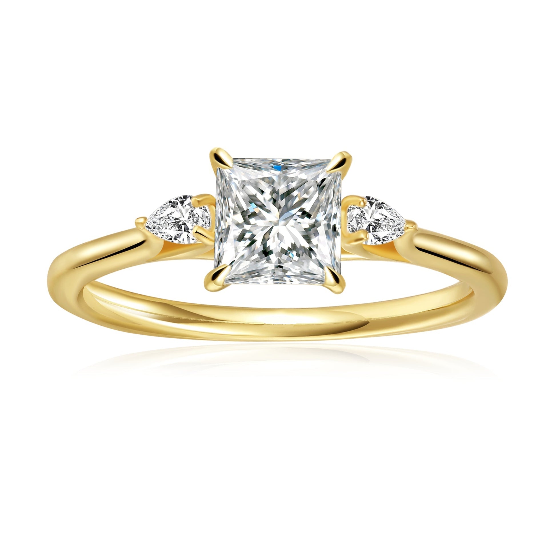 Trinity Princess Cut Moissanite Engagement Ring Set in 9ct Yellow Gold