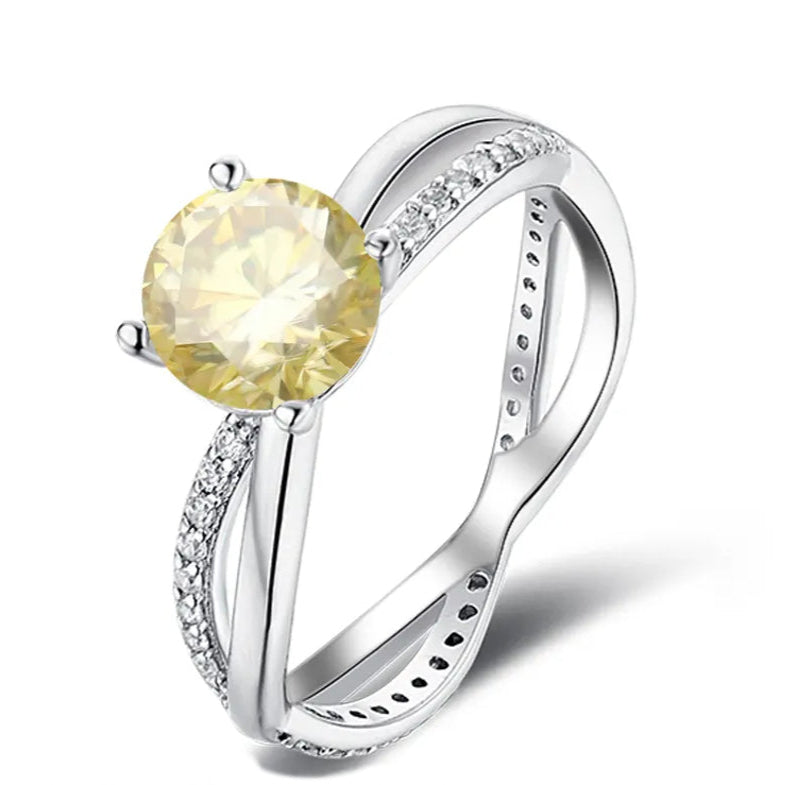 Spiral 1.00ct Yellow Moissanite Engagement Ring Set in Sterling Silver