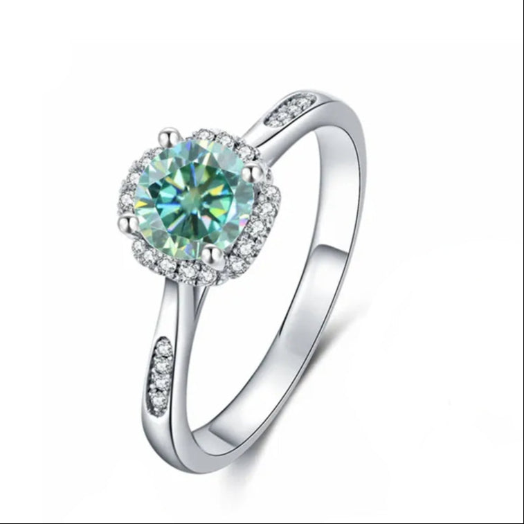 Luxe Halo 1.00ct Green Moissanite Engagement Ring Set in Sterling Silver
