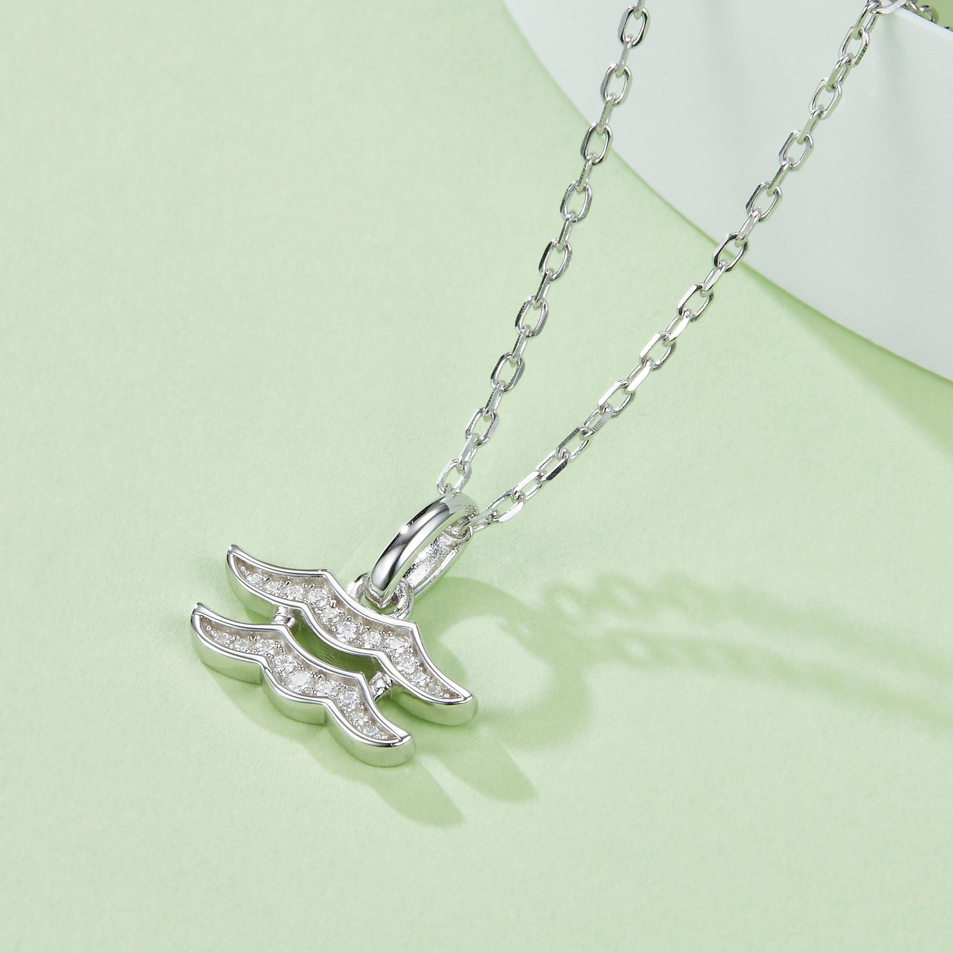 Aquarius Zodiac Moissanite Necklace in White Gold