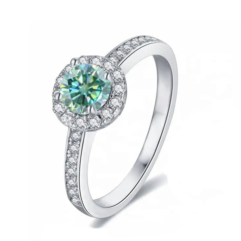 Pave Halo 0.50ct Green Moissanite Engagement Ring Set in Sterling Silver