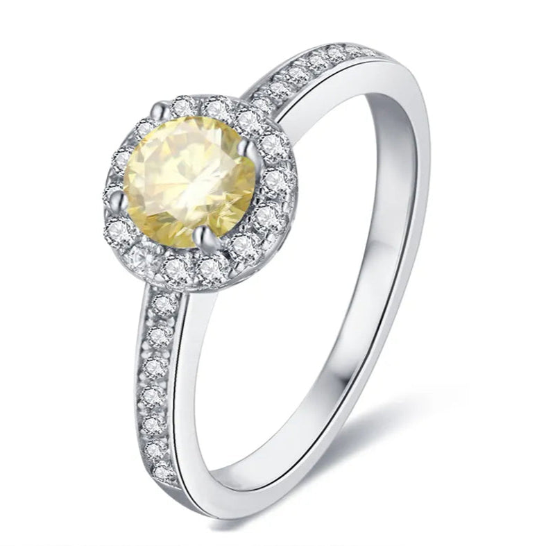 Pave Halo 0.50ct Yellow Moissanite Engagement Ring Set in Sterling Silver