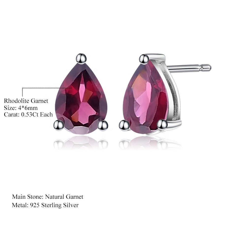 Stones: 0.53ct each (4mm x 6mm) pear-cut natural Rhodolite Garnet