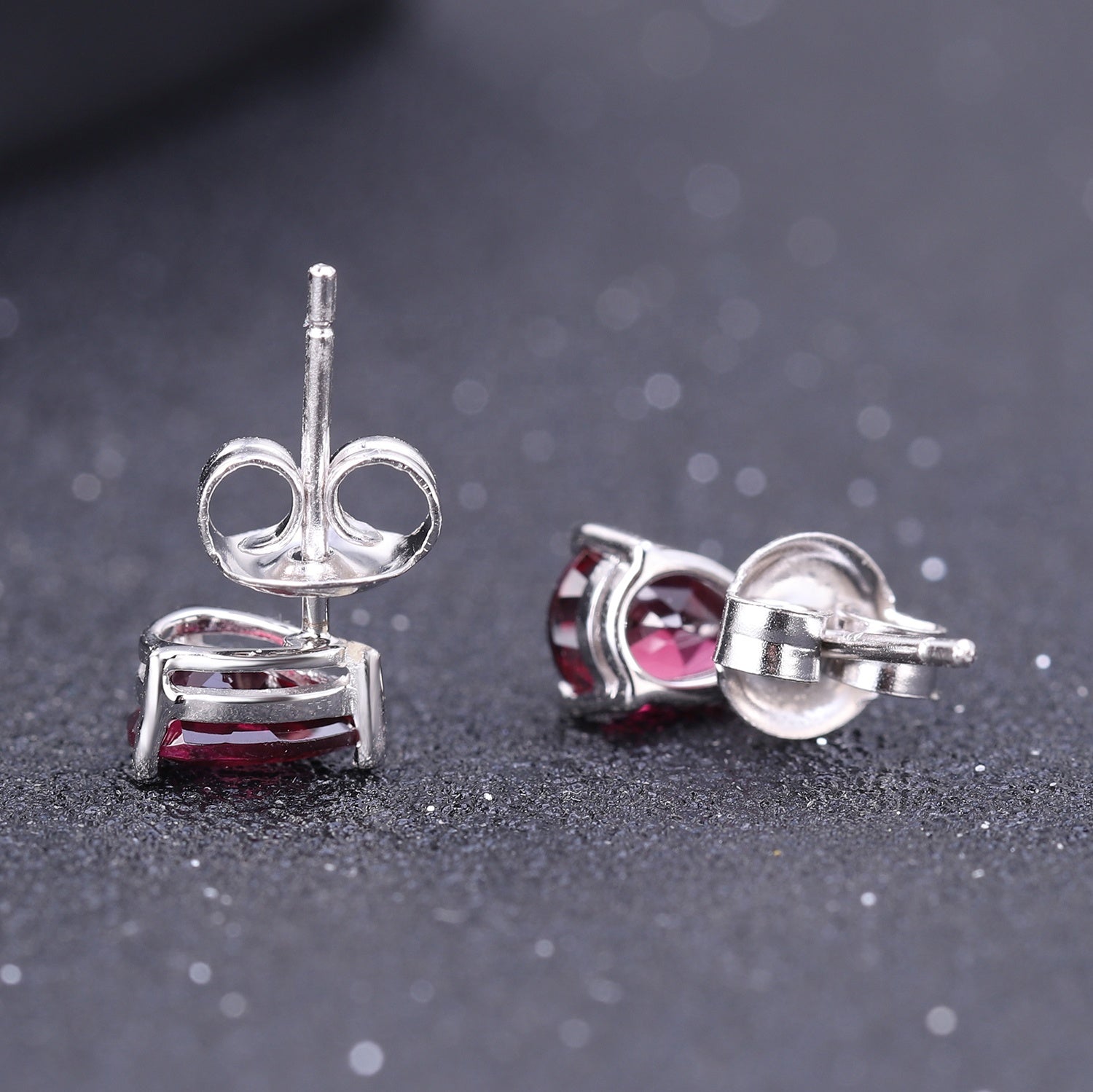 These elegant Rhodolite Garnet solitaire stud earrings feature the rich, rose-red glow of a lighter, purplish-toned garnet. Each 0.53ct pear-cut gemstone is expertly faceted to maximise light reflection, symbolising love, compassion, and emotional renewal. Set in a classic three-claw mount of 925 Sterling Silver and finished with rhodium plating, these earrings offer exceptional lustre, resistance to tarnish, and hypoallergenic comfort. Perfect for adding a graceful pop of colour to everyday attire or gifting as a meaningful token of affection.