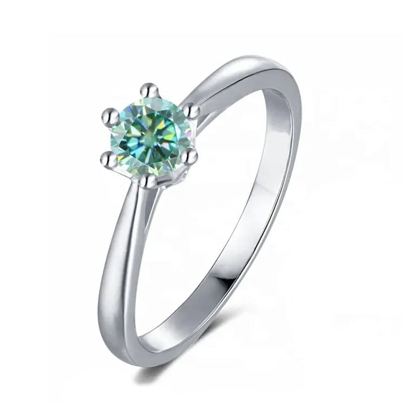 Solitaire 6 Claw Floral Basket 0.50ct Green Moissanite Engagement Ring Set in Sterling Silver