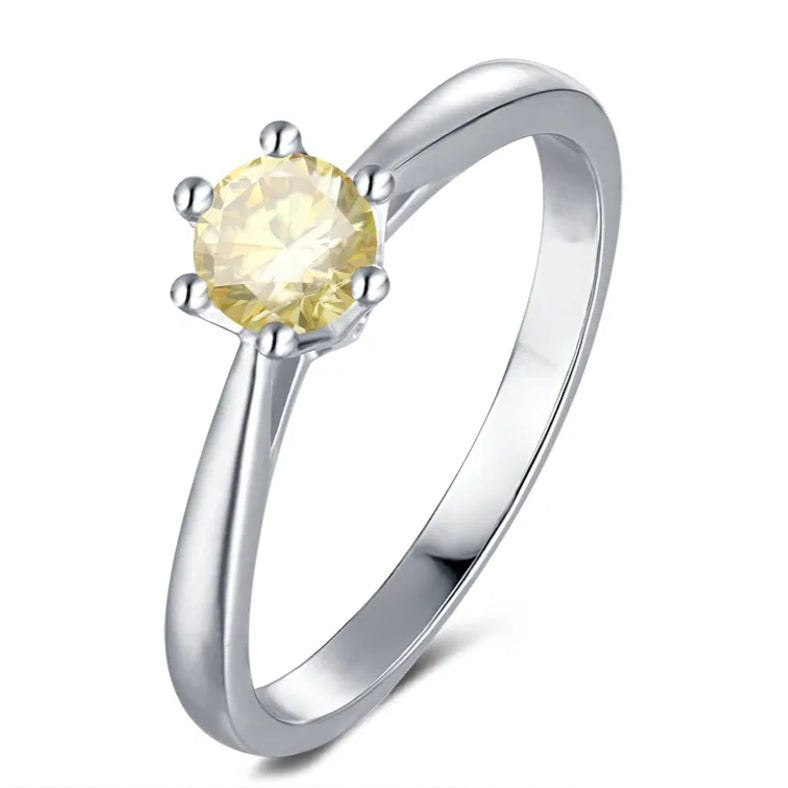 Solitaire 6 Claw Floral Basket 0.50ct Yellow Moissanite Engagement Ring Set in Sterling Silver