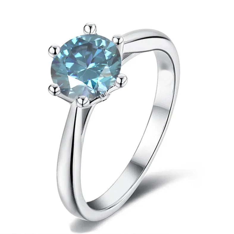Solitaire 6 Claw Floral Basket 1.00ct Blue Moissanite Engagement Ring Set in Sterling Silver