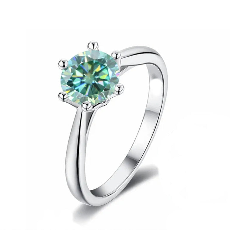 Solitaire 6 Claw Floral Basket 1.00ct Green Moissanite Engagement Ring Set in Sterling Silver