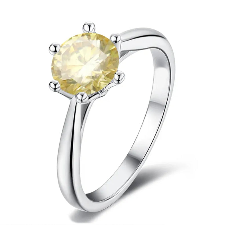 Solitaire 6 Claw Floral Basket 1.00ct Yellow Moissanite Engagement Ring Set in Sterling Silver