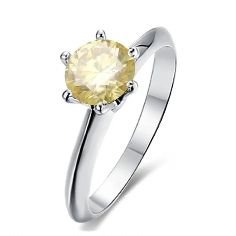 Solitaire Tiffany 6 Claw Setting 1.00ct Yellow Moissanite Engagement Ring Set in Sterling Silver